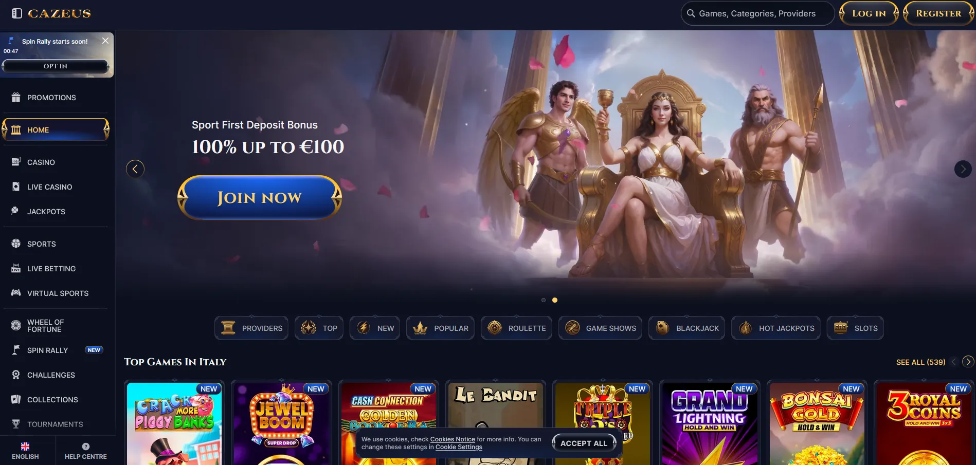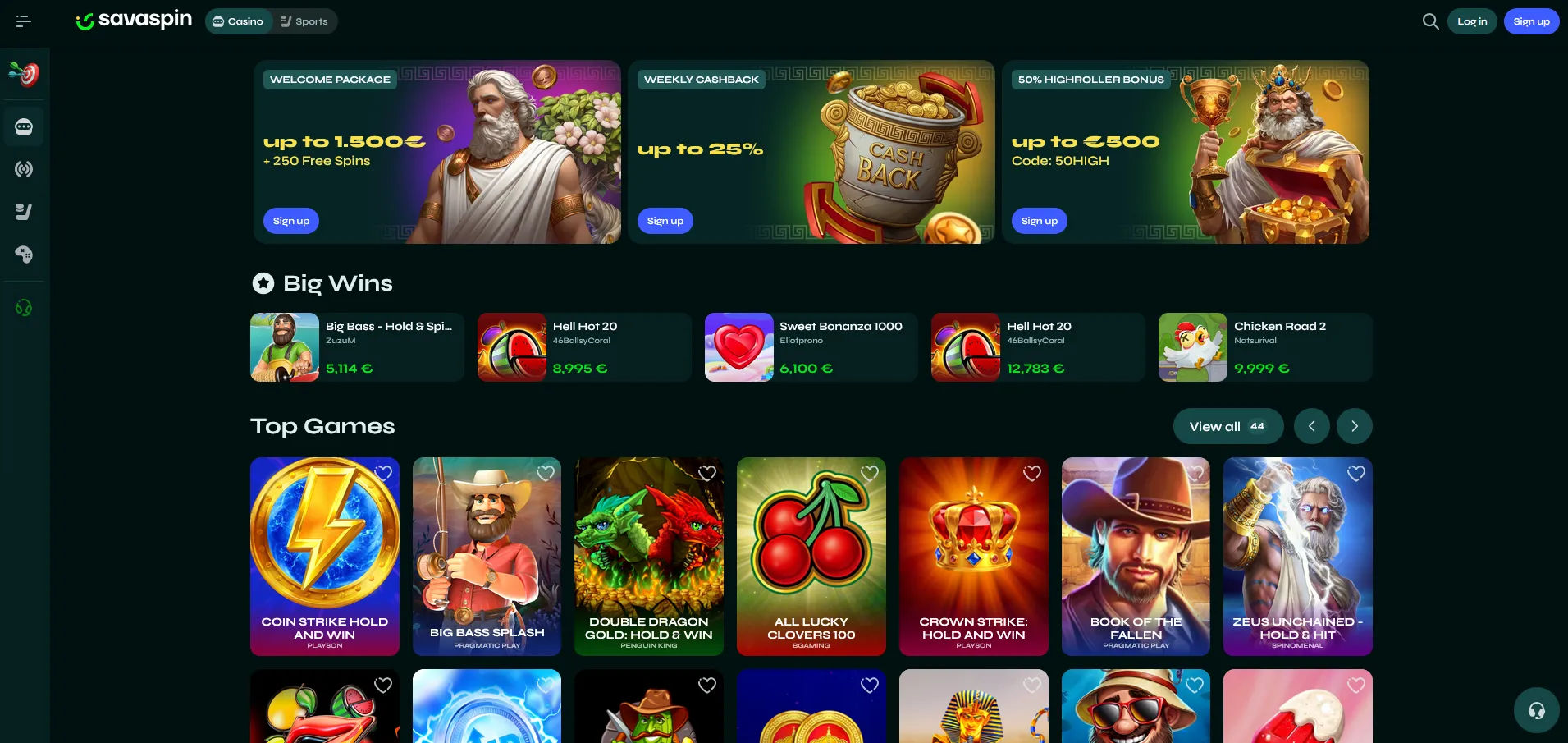 Herná knižnica ponúka približne 3 500 hier. Nájdete tu online automaty od výrobcov ako Pragmatic Play, Hacksaw Gaming, Nolimit City, Playtech, Microgaming či Yggdrasil. Nechýba ruleta, blackjack, baccarat, herné šou v live kasíne a viacero sekcií s instant win hrami. Uvítací bonus býva napríklad 100 % do 250 € + 100 freespinov, s požiadavkou pretočenia 35x bonusu. Podmienky patria v segmente najlepšie online kasína k tým priaznivejším.